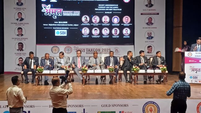 जयपुर,(dusrikhabar.com)। देश के सबसे प्रतिष्ठित सीए सम्मेलन टेक्सकॉन- 2025 ‘अमृत’ का आरआईसी में आयोजन किया गया। इसका उद्घाटन प्रीवेंशन ऑफ मनी लॉन्ड्रिंग एक्ट (पीएमएलए )अपीलेट ट्रिब्यूनल के चेयरमैन जस्टिस एमएन भंडारी ने किया। इस मौके पर इनकम टैक्स अपीलेट ट्रिब्यूनल के सदस्य मनीष बोरड, सेंट्रल बैंक ऑफ इंडिया के कार्यकारी निदेशक महेंद्र डोहारे , कॉन्फ्रेंस चेयरमैन सीए ओपी अग्रवाल, कॉन्फ्रेंस डायरेक्टर सीए गौतम शर्मा, सीए आरपी विजय, सीए सतीश गुप्ता, सीए शैलेंद्र अग्रवाल के साथ कर सलाहकार संघ के सदस्यों ने भाग लिया।
