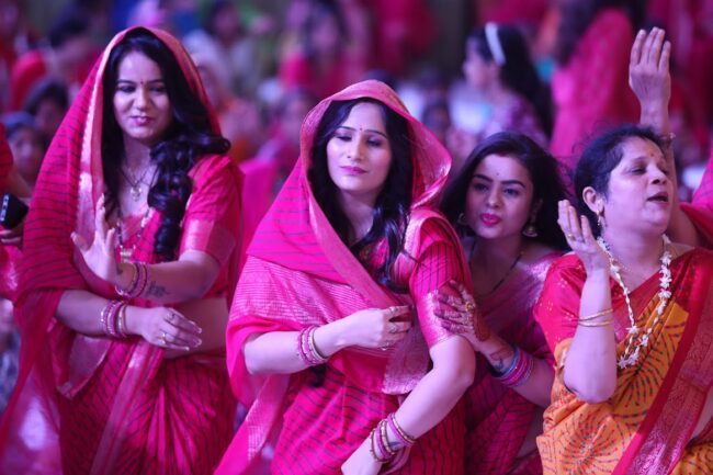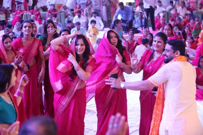कार्यक्रम के अंत में पंगत प्रसादी का भी आयोजन किया गया जिसमें खीर, मालपुआ, तीन तरह की सब्जियां, दो तरह की पुड़ियां और भुजिया प्रसादी का भक्तों ने आनंद लिया।