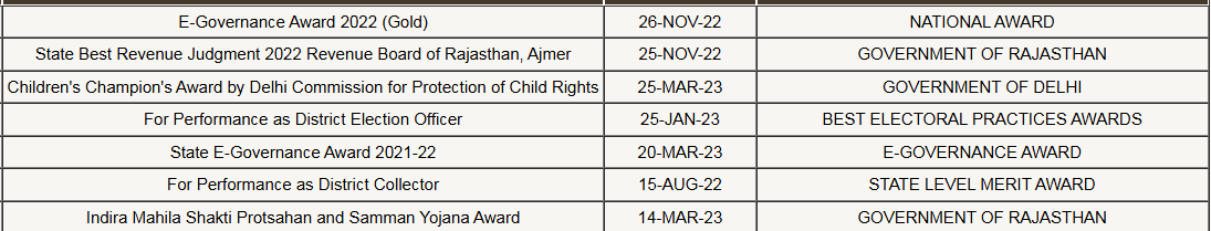 बतौर IAS प्रशासनिक सुधार एवं अन्य कार्यों को लिए रुक्मणि रियार को मिले कई राष्ट्रीय-राज्य स्तरीय पुस्कार