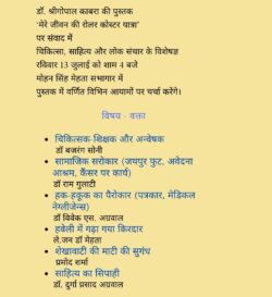 Dr. Shrigopal Kabra book discussion, The Roller Coaster Ride of a Life book review, Dr. Kabra biography discussion, Medical ethics and society, Jaipur literature event 2025, Shrigopal Kabra medical journey, Multidisciplinary personality India, Lok culture and literature Rajasthan, Dr. Durga Prasad Agarwal on Kabra, Pramod Sharma grassroots foundation, Medical education reflections India, Jaipur literary roundtable, Social service in healthcare India, Shrigopal Kabra Jaipur Foot, contribution, Medical negligence activism in India,